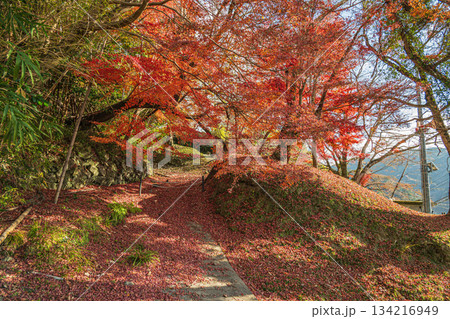 山の斜面に散るモミジの落ち葉 京都府笠置町