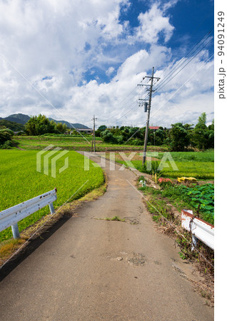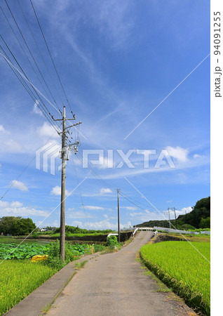 田んぼを通る田舎道の景観 中荻野の田舎風景