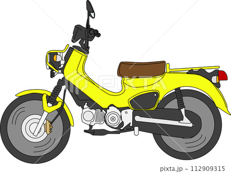 小型バイクにまたがっている笑顔の男性のイラスト(短距離ツーリング)