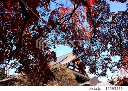 福蔵院の本堂と赤く染まった楓(2)