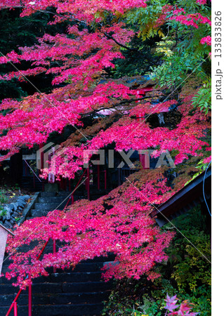 秋の青森県黒石市 紅葉の中野もみじ山 中野神社