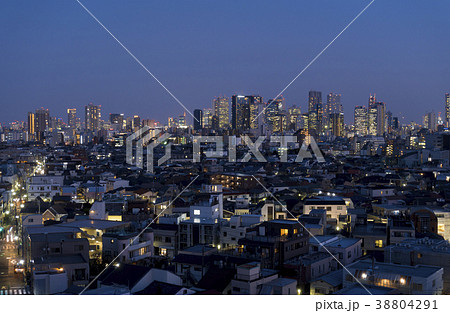 東京夜景 中野駅方面から望む 中野坂上・西新宿 2大高層ビル群 希少ロケーション素材