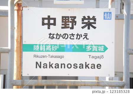 仙石線 中野栄駅の駅名表示板(仙台市宮城野区)