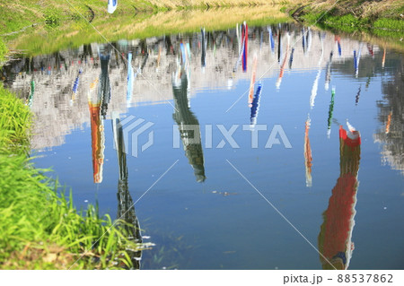 【きらめきロード中河】鯉のぼりと桜並木 2022年