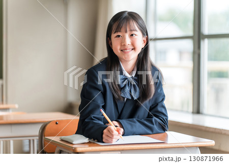 試験をうける中学校の女子生徒