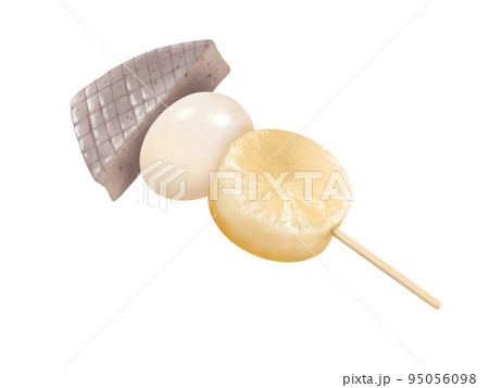 串おでん(蒟蒻・卵・大根)のリアルな水彩イラスト