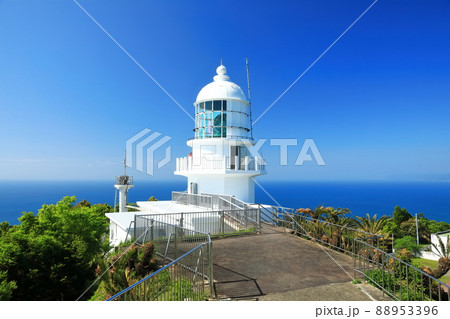 断崖にそびえる白亜の都井岬灯台(宮崎県)