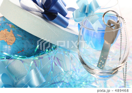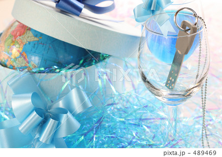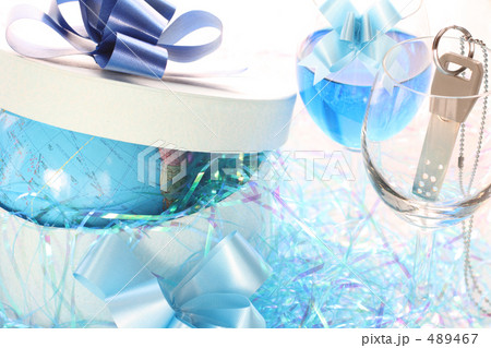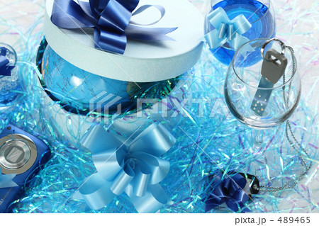 丸いプレゼント ブルー 切り抜き 白横 (新)