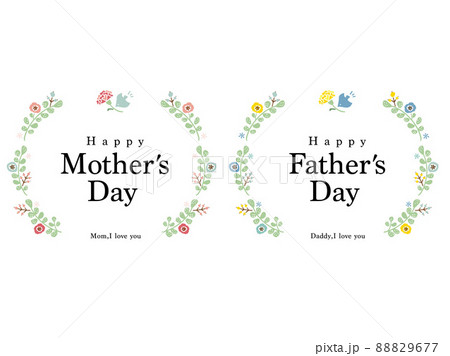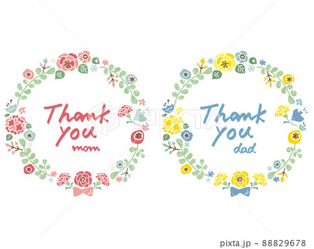 かわいい母の日と父の日のリースセット/手描きイラスト素材