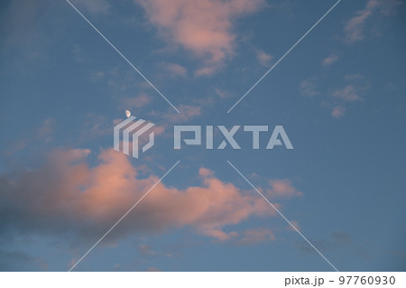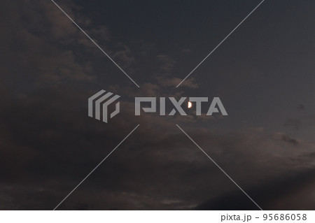 北杜市白州町、夕空、夕焼け雲の中に月齢8.2の月
