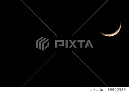 北杜市白州町、月齢3.3クレーターの見える細い月