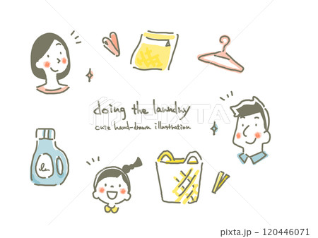三人家族と洗濯用品のフレーム お洒落でかわいい手描きイラスト