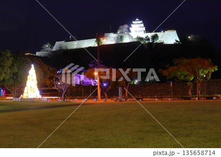 ライトアップされた丸亀城(丸亀市民ひろば)
