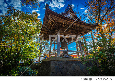 日本の風景、小丸山城址公園横の光徳寺庭園の釣り鐘、七尾市、11月12日地