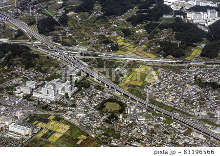 東名高速の伊勢原ジャンクション付近を空撮