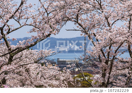 桜が満開の七尾市の小丸山城址公園