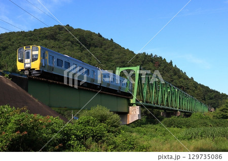 [阿武隈急行8100系]阿武隈川渓流に夏が訪れた鉄道風景