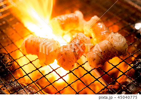 ホルモンを七輪で焼いている(丸腸よく焼き)