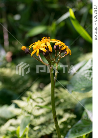 黄色い花が咲いた赤葉マルバタケブキ/キク科