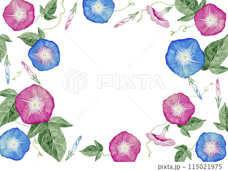 朝顔 夏 花 背景 フレーム 水彩 イラスト