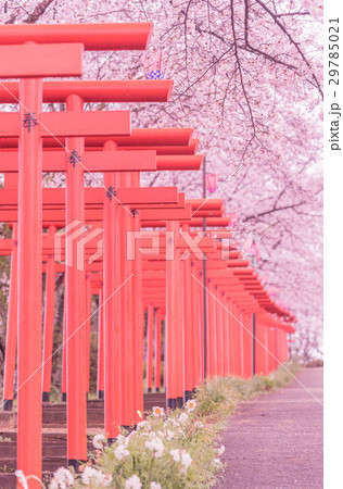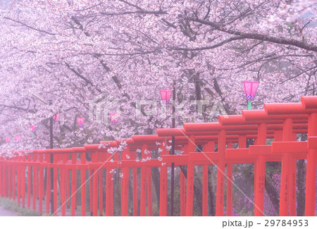 千本鳥居と満開の桜 丸高稲荷神社 和歌山県橋本市