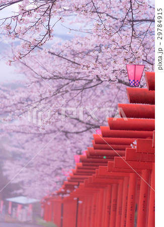 満開の桜と千本鳥居 丸高稲荷神社 和歌山県橋本市