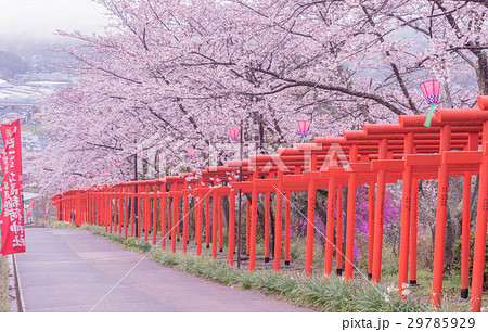 桜満開の丸高稲荷神社 千本鳥居 和歌山県橋本市