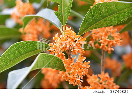 オレンジ色の金木犀(キンモクセイ)の花