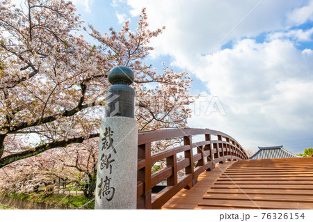 五条川にかかる裁断橋、満開の桜〈愛知県丹羽郡〉