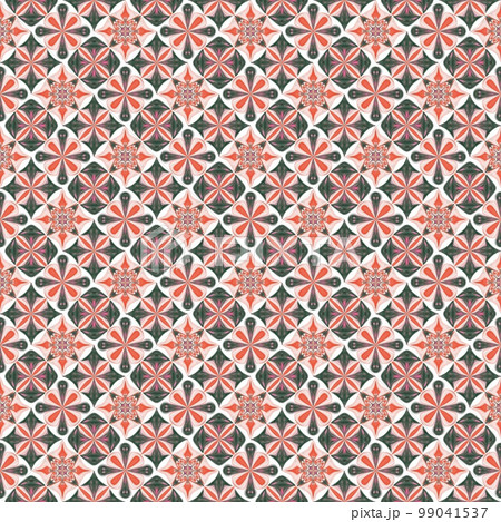 花と星の幾何学的模様、抽象模様シームレスパターン、ジオメトリックリピートパターン、抽象的背景イラスト
