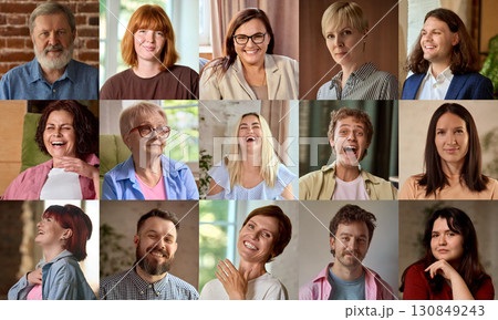 Collage of diverse people portraits with smiling and neutral faces expressing positive emotions
