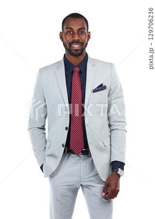 Businessman, success and CEO portrait with leadership, executive smile with vision isolated on white background. Black man, black business and professional corporate boss, career goals with mindset