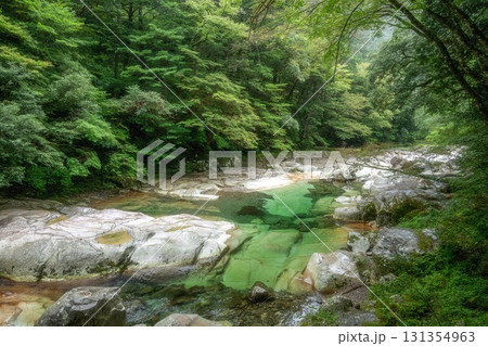 夏の面河渓 五色河原と五色橋 愛媛県上浮穴郡久万高原町