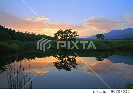 夕焼けの池(大分県竹田市)