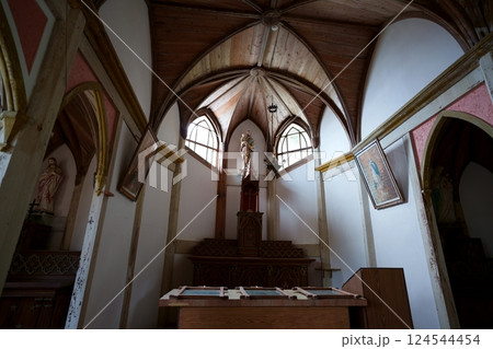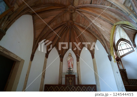リブ・ヴォールト天井を見る旧五輪教会堂内部風景