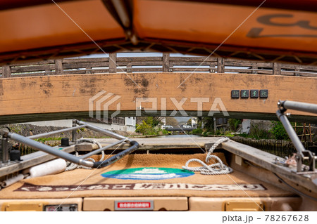 島根県松江市 松江城の堀川めぐり 低い橋を通り抜ける時の船の屋根