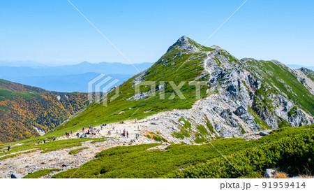(長野県)千畳敷カール・乗越浄土から望む、中岳山頂 秋