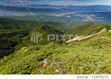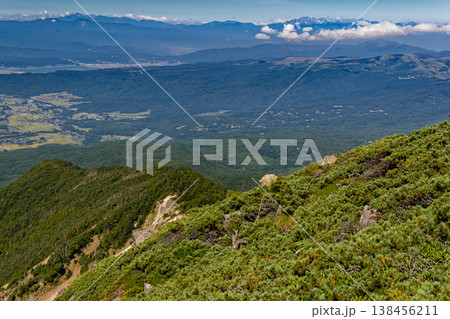 八ヶ岳連峰・西天狗岳から見る御・乗鞍岳と諏訪湖