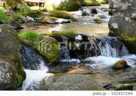 栃木県 那須 乙女の滝周辺の渓流の流れ