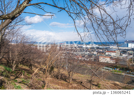 天王山中腹の展望台から見下ろす大山崎町市街地風景 京都府乙訓郡