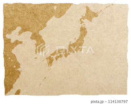 大陸と日本地図_ゆるいふちの羊皮紙背景