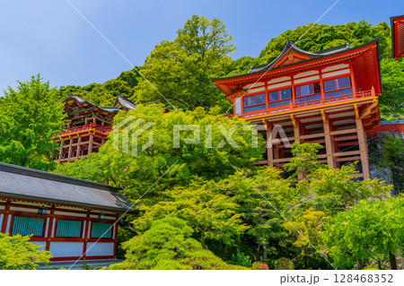(佐賀県)祐徳稲荷神社 新緑に包まれた庭園から見上げる御本殿