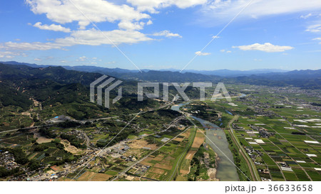 [空撮]福岡県朝倉市 九州北部豪雨前2016年7月の朝倉市・うきは市(真夏の筑後川上空より撮影)