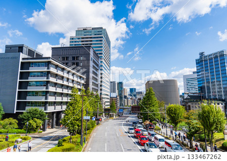 東京都 靖国通り田安門交差点から見る晴天の九段下市街風景