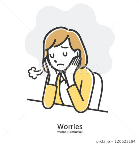 ため息/落ち込む/悩み/悲しい/体調不良/女性・女の子のイラスト素材