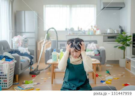 頭を抱えた主婦