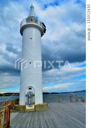 江の島 湘南大堤防から観た嵐の前の湘南港灯台