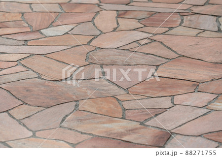 赤茶色の乱張りした乱形の敷石の表面の背景画像2