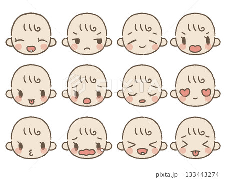 手描きの赤ちゃん表情セット白黒3アクシデント