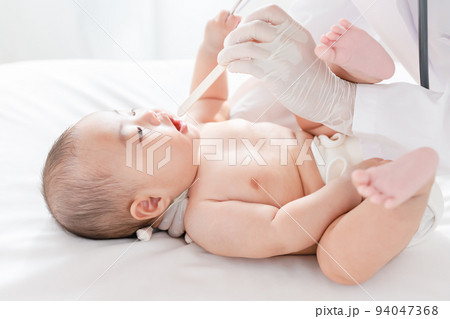小児科で診察を受ける赤ちゃん 喉の診察 健診 乳幼児健康診査
